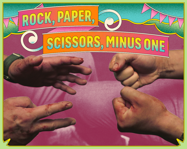 The core rule is a macabre twist: each player makes the classic shapes with both hands, then retracts one.