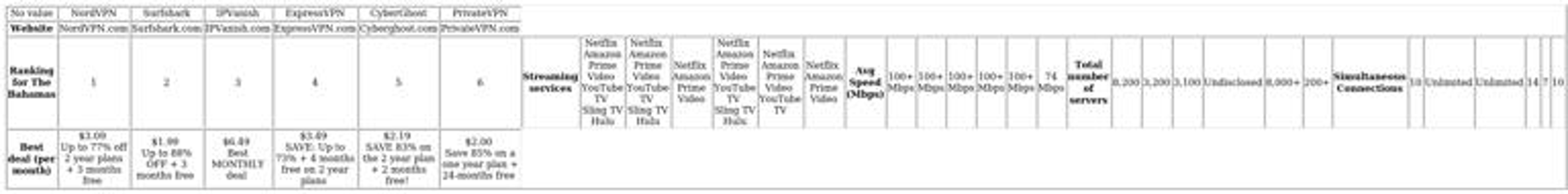 After thorough testing against these stringent requirements, we've compiled our recommendations of VPN services that deliver exceptional performance for users in The Bahamas.