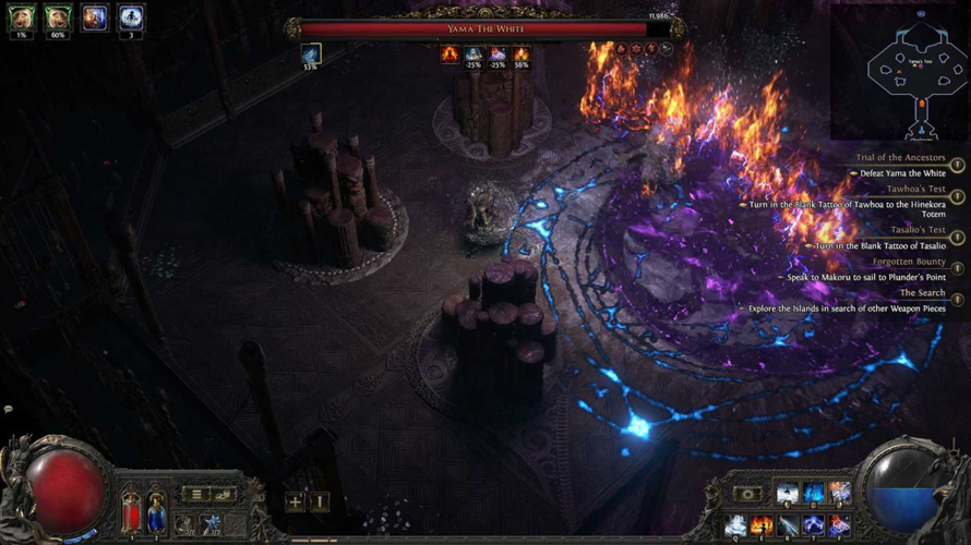 As you progress through the island, keep an eye out for the monkey pillars and apparitions—elements that may influence your strategy or provide opportunities for tactical advantage. Overcoming Yama the White is not only a matter of raw power but also of strategic execution, making it a significant milestone in your journey through Path of Exile 2.