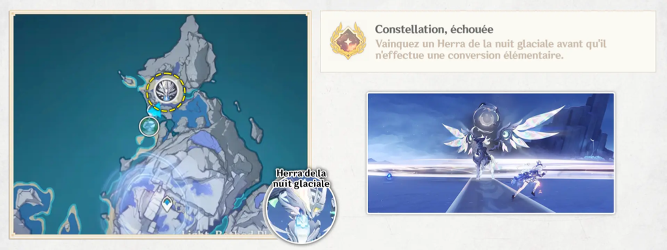 Au cours de l'affrontement, l’Herra adopte une position centrale dans la zone, prêt à charger, afin de modifier son type élémentaire. Cette stratégie vise à ajuster la nature de ses résistances, en absorbant principalement certains types de dégâts. L’objectif est de provoquer rapidement une réaction sélène en infligeant un maximum de dégâts en environ dix secondes. Cela affaiblira considérablement le boss avant qu’il ne change de type, facilitant ainsi la victoire. La réussite de cette manœuvre permet d’obtenir le succès recherché.